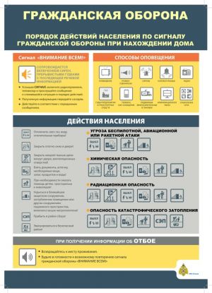 Гражданская оборона — система мероприятий по подготовке к защите и по защите населения, материальных и культурных ценностей от опасностей, возникающих при ведении военных действий или вследствие этих действий, а также при возникновении чрезвычайных ситуаций природного и техногенного характера. Организация и ведение гражданской обороны являются одними из важнейших функций государства, составными частями оборонного строительства, обеспечения безопасности государства. Гражданская оборона (ГО) является одной из важнейших функций государства, составной частью оборонного строительства и обеспечения безопасности населения страны. Общее руководство гражданской обороной осуществляет Правительство Российской Федерации. В связи с возросшей угрозой применения химического, биологического и других видов оружия руководством гражданской обороны уделяется серьёзное внимание использованию ресурсов ГО для противодействия терроризму, развитию сети наблюдения и лабораторного контроля. |