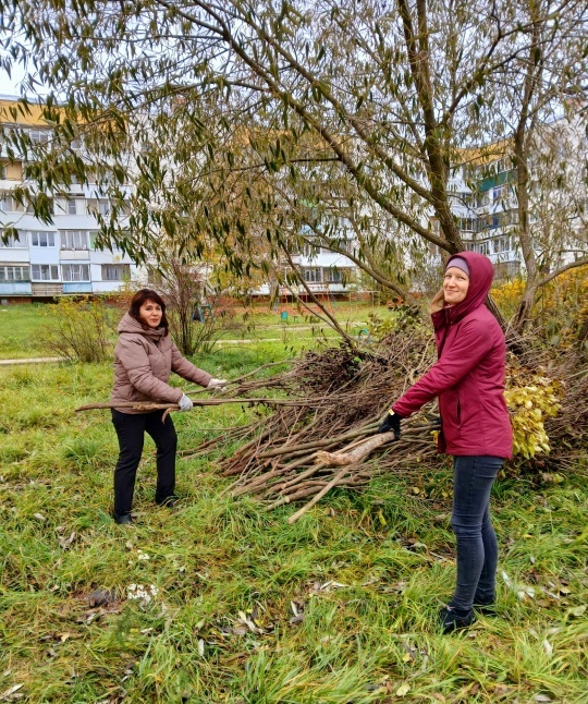 Все вместе мы дружно навели порядок и уют на прилегающей к зданию Дома детского творчества и на соседней территории : собрали бытовой мусор, убрали старые ветви деревьев и опавшие листья, привели в порядок цветочную клумбу, позаботились о зелёных туях на аллее возле Дома детского творчества.