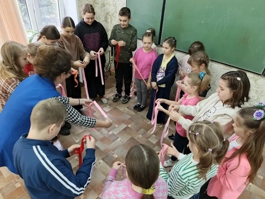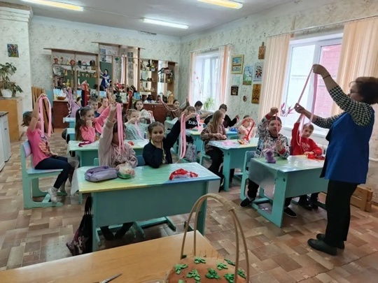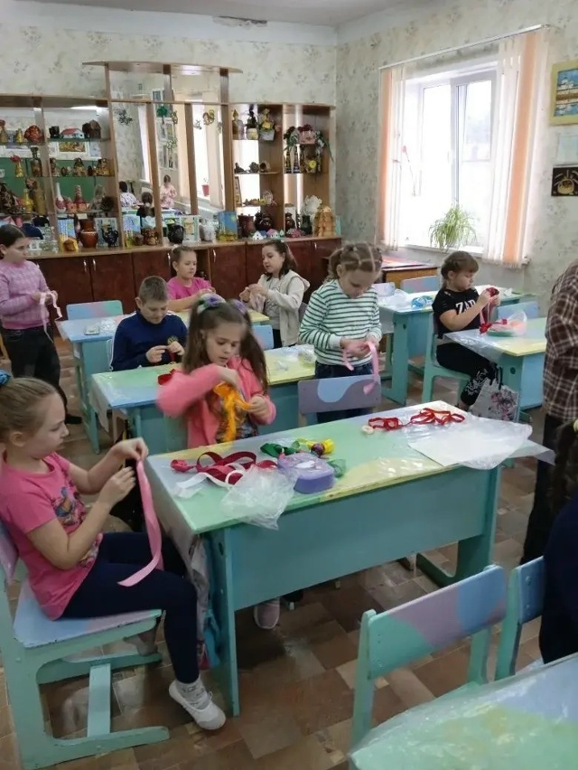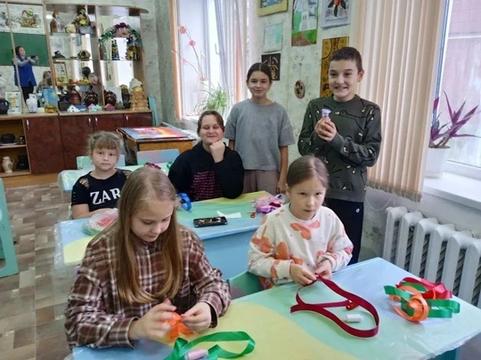 Школьники учились выполнять розу путем складывания шелковых лент, поверьте это непросто! Но участники очень старались!