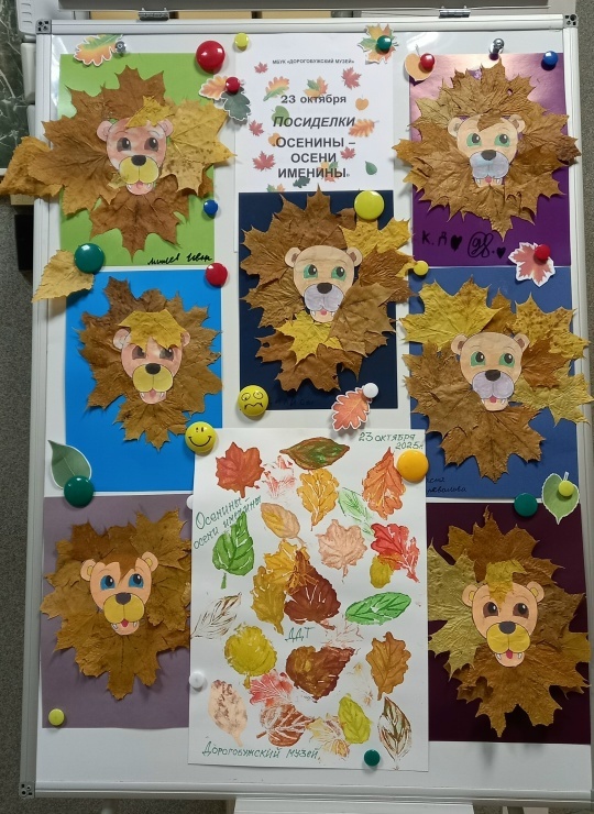 своими поделками с музеем. А на память о посиделках присутствующие поставили на общем листе ватмана осенние