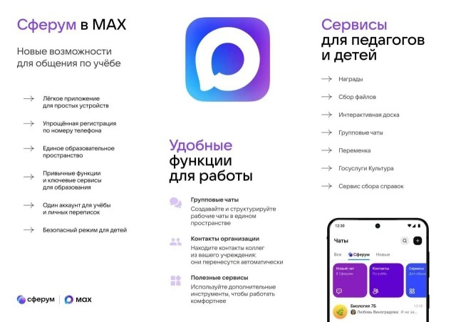 Информационно-коммуникационный образовательный сервис «Сферум» успешно интегрирован в национальный мессенджер MAX и доступен для педагогов, учащихся и их родителей.