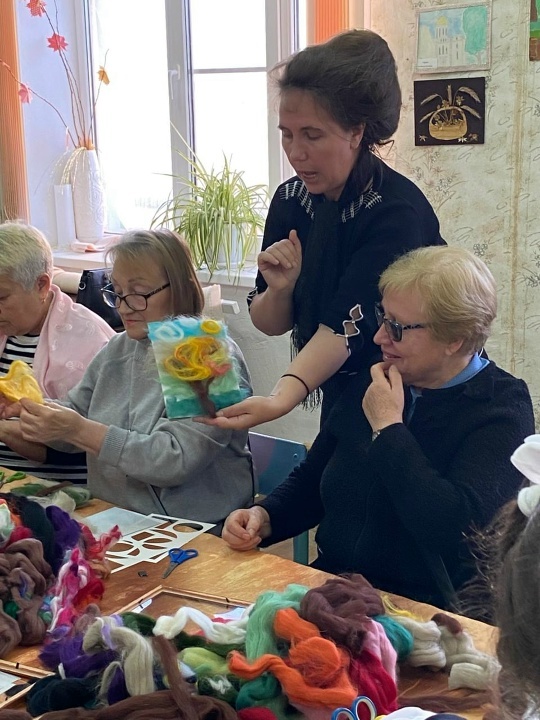 Но наших гостей ждал ещё один сюрприз – это приглашение на творческий мастер-класс , который подготовила педагог Валентина Кузина . В обстановке, наполненной творчеством и вдохновением, представители старшего поколения вместе с детьми увлечённо создавали настоящие шедевры в технике шерстяная акварель.