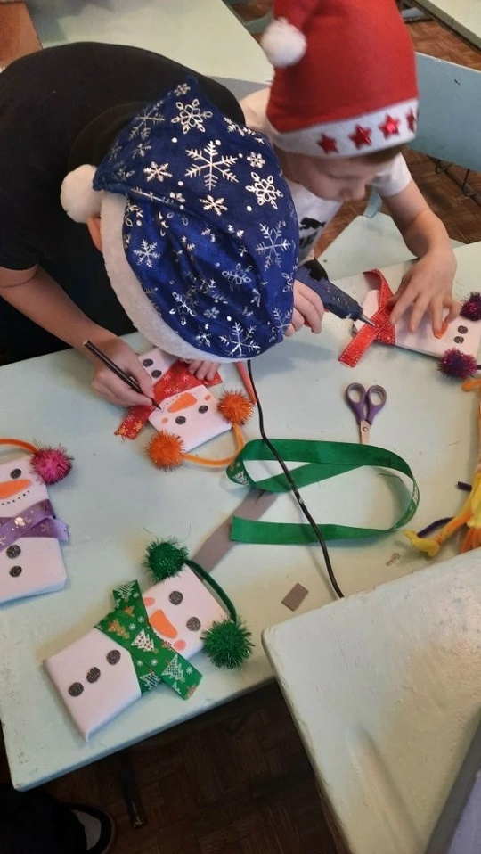 Ребята из творческого объединения "Чудесная мастерская"(руководитель Наталья Елисеева) научились украшать новогодний стол "Сладкой ёлочкой" и красиво оформлять шоколадкув подарок - " Забавный снеговичок".