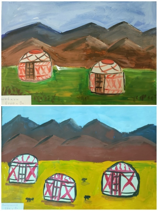 Ребята узнали, что наиболее распространенным типом жилища во всех районах Тувы, за исключением таежных, была и остается разборная и переносная юрта с деревянным легким каркасом, покрытая войлоком. В большинстве районов она называется древним тюркским словом “Өг“, известным уже в орхонских надписях.