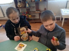 Выполняли пасхальные яйца из разных материалов (цветная бумага,салфетки).
